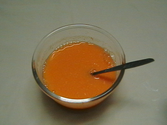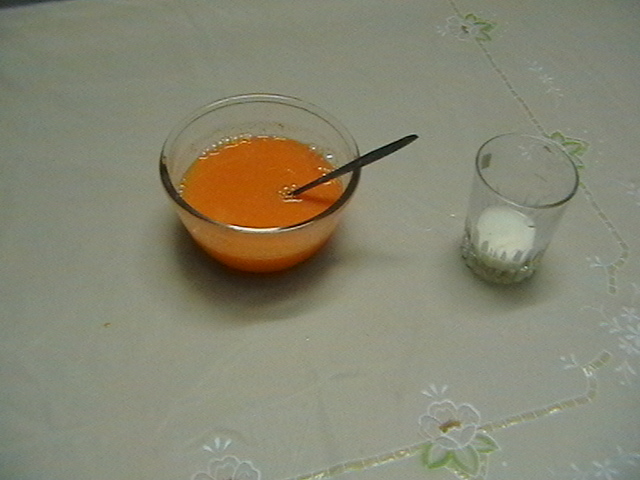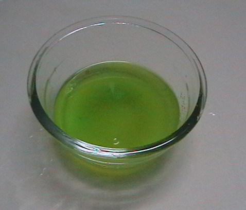1- من در مرحله اول از رنگ زرد استفاده کردم . ابتدا پودر زله را با یک لیوان آب جوش حل می کنیم