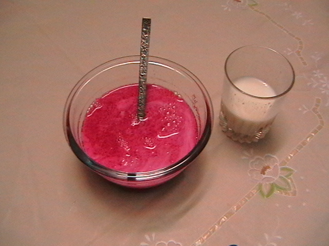 2- سپس به جای آب سرد از شیر استفاده می کنیم توجه کنید که شیر نباید خیلی سرد باشد چون امکان دارد ببرد . البته من برای غلیظ تر و خوشمزه تر شدن همیشه ( کمتر ازیک ) لیوان آب سرد , آبمیوه و یا در این مورد شیر استفاده می کنم .