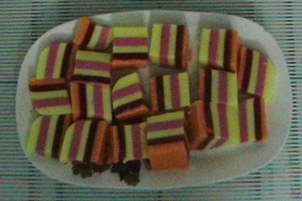 توجه داشته باشید که برای داشتن ژله های چند رنگ نمی توانید همه ی ردیف ها را شفاف درست کنید زیرا ژله های شفاف به علت انعکاس نور خیلی مشخص نیستند و زحمت شما به هدر می رود . حداقل باید ی در میان از ژله شفاف و ژله با شیر استفاده کنید