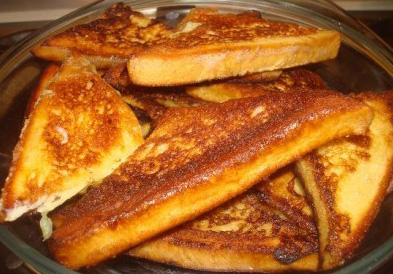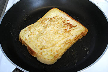 یک ظرف گود انتخاب کنید و مایع را داخل آن بریزید و سپس نان تست ها را تک تک داخل مایع قرار دهید به طوریکه مایع روی آن را بپوشاند