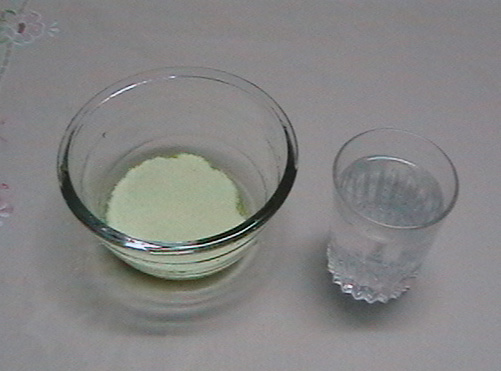 1- من در مرحله اول از رنگ زرد استفاده کردم . ابتدا پودر زله را با یک لیوان آب جوش حل می کنیم