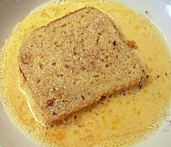 یک ظرف گود انتخاب کنید و مایع را داخل آن بریزید و سپس نان تست ها را تک تک داخل مایع قرار دهید به طوریکه مایع روی آن را بپوشاند